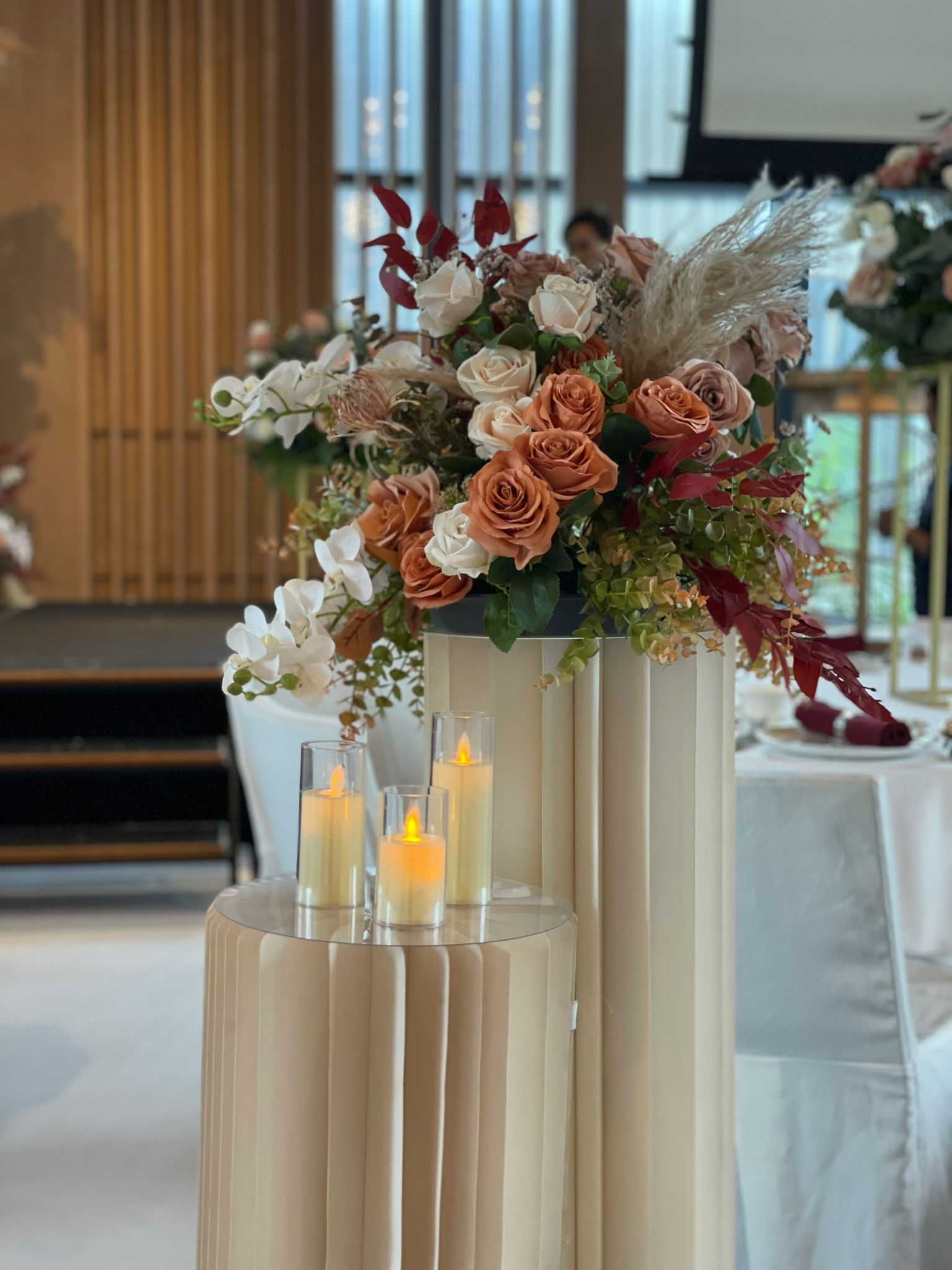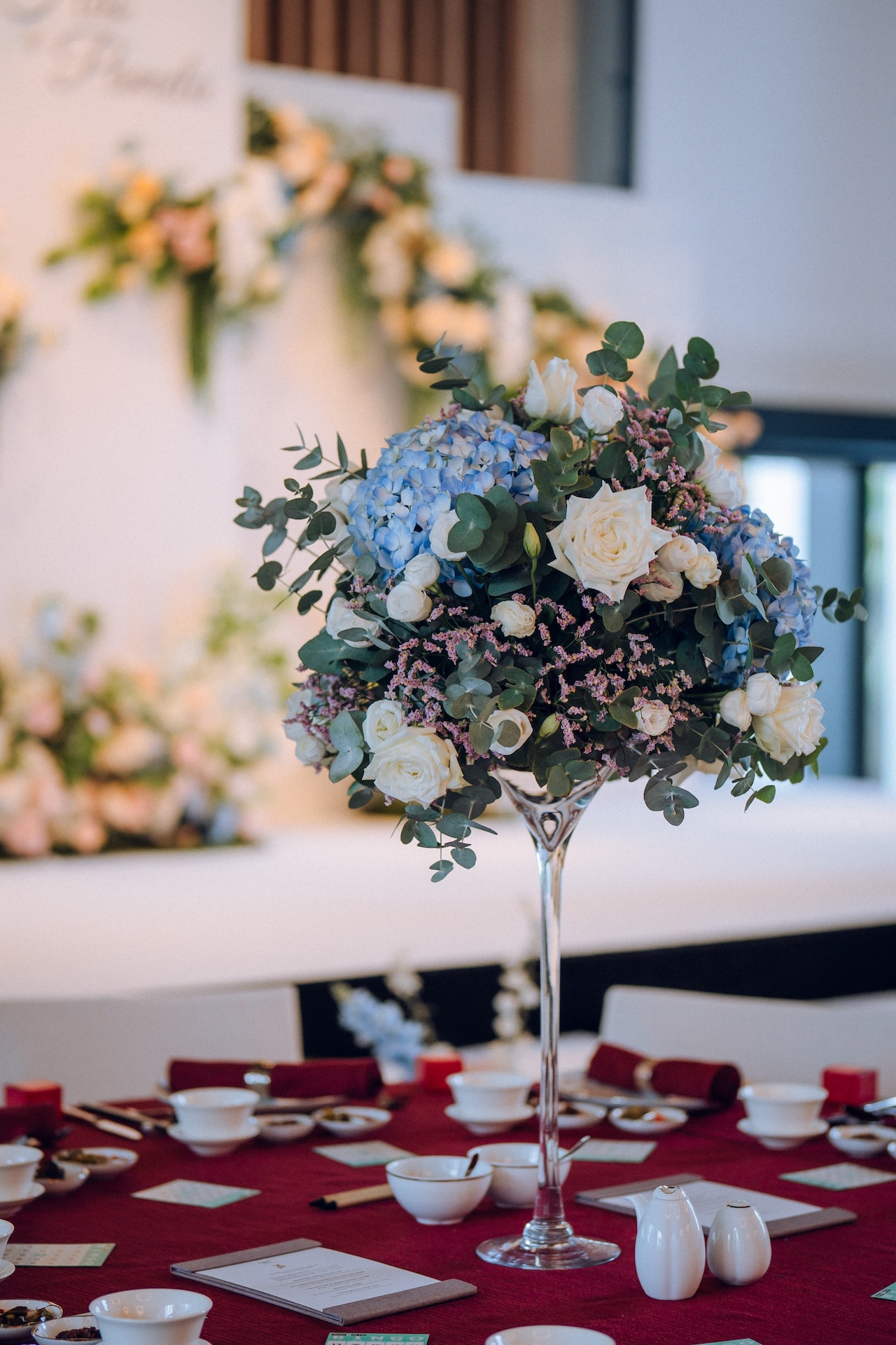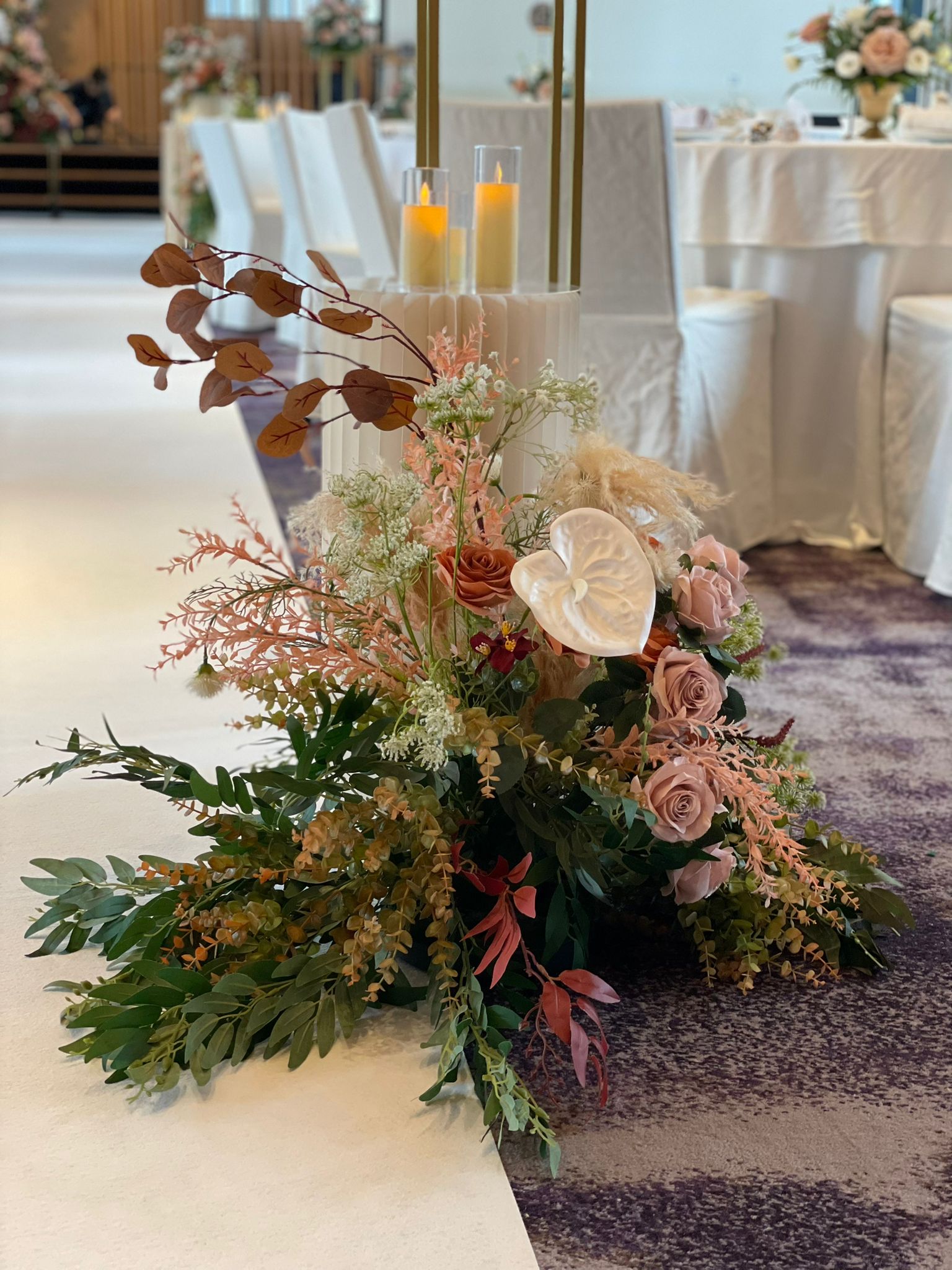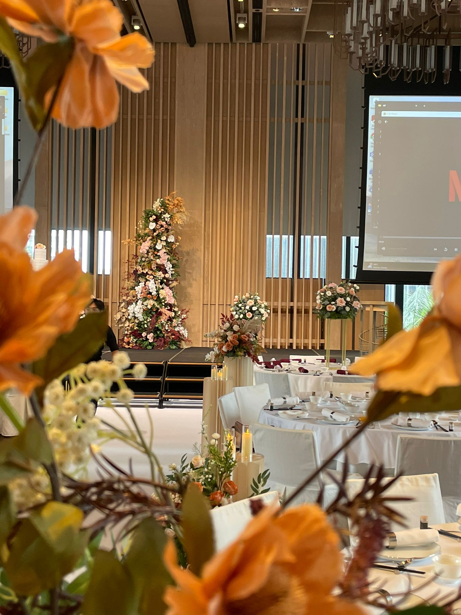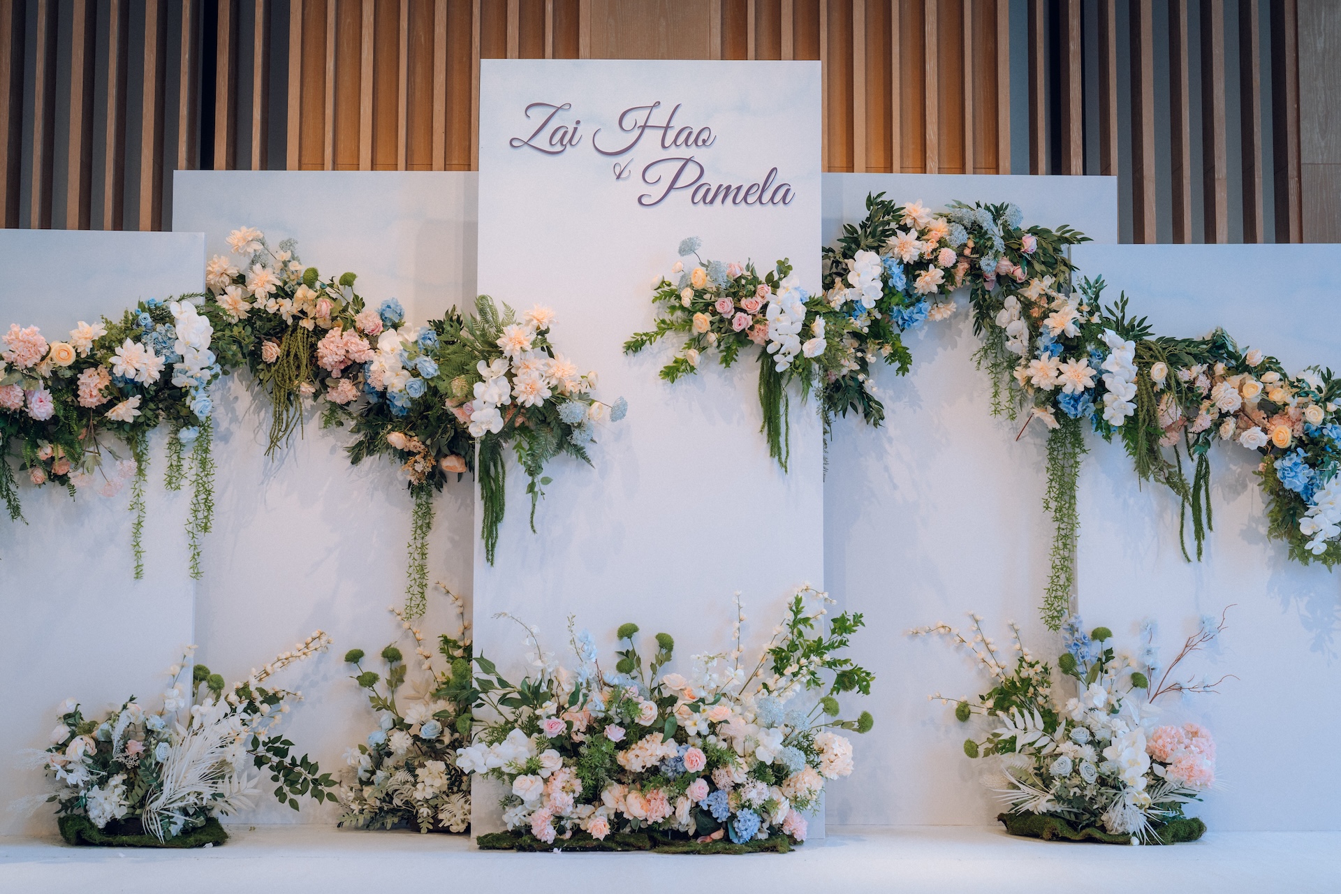 In Ms Mary Golez’s TikTok video, a red carpet along with an art deco backdrop can be seen, allowing for guests to pose for photos at the entrance. Guests then walk down a colourful floral-lined aisle to enter the venue.